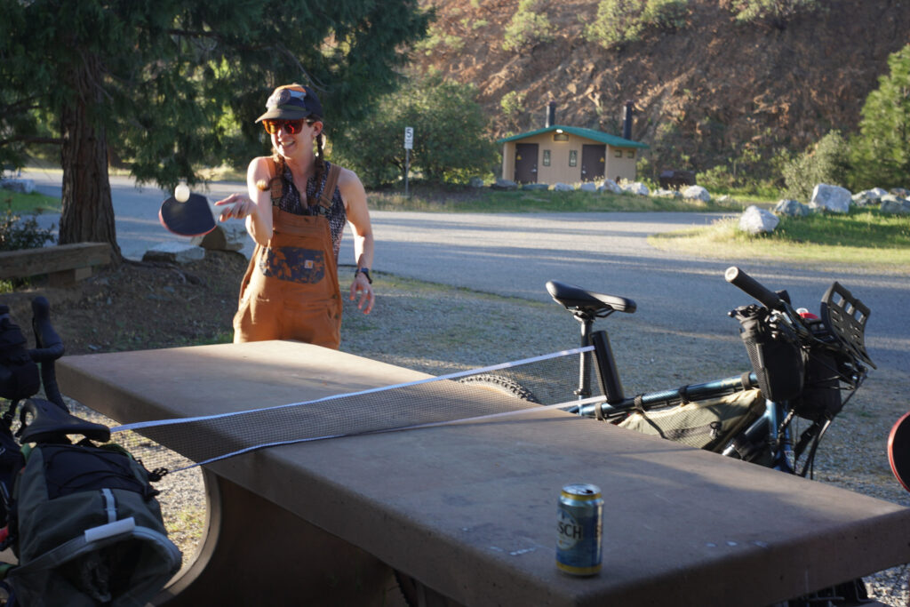 While waiting for the sun to set, some of the group hiked down to the water, while others pulled out a ping pong kit to play on one of the campsite tables. A select few rode to the top of Shasta Dam to take in the view and the setting sun. As night fell, we started a fire in the fire pit and gathered around—telling stories, joking around, and keeping an eye out for odd sightings in the night sky.