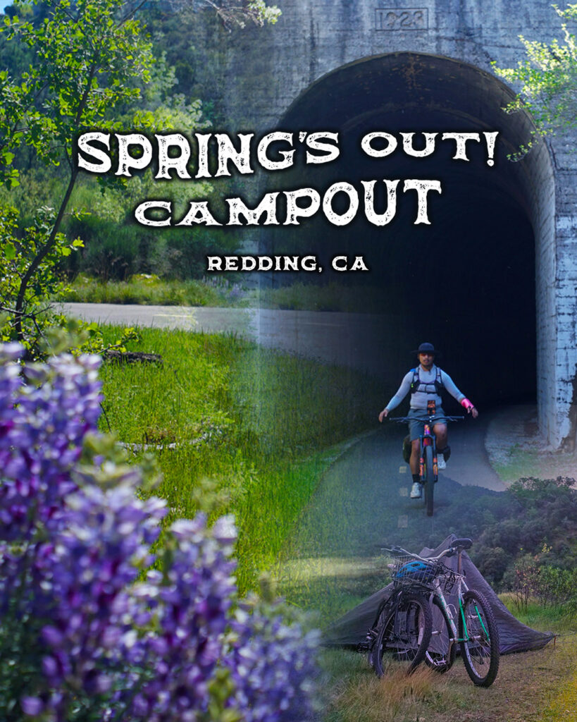 The Spring’s Out! Campout was a community bike campout, hosted and organized by Redding Adventure Hub and Bike, Camp & Chill. Redding Adventure Hub is your local hub for biking the great outdoors in Northern California. Bike, Camp & Chill is a just-for-fun adventure and media project focused on bikepacking, route development, and getting more people out riding and connecting outdoors—created by Dallas Mignano.
